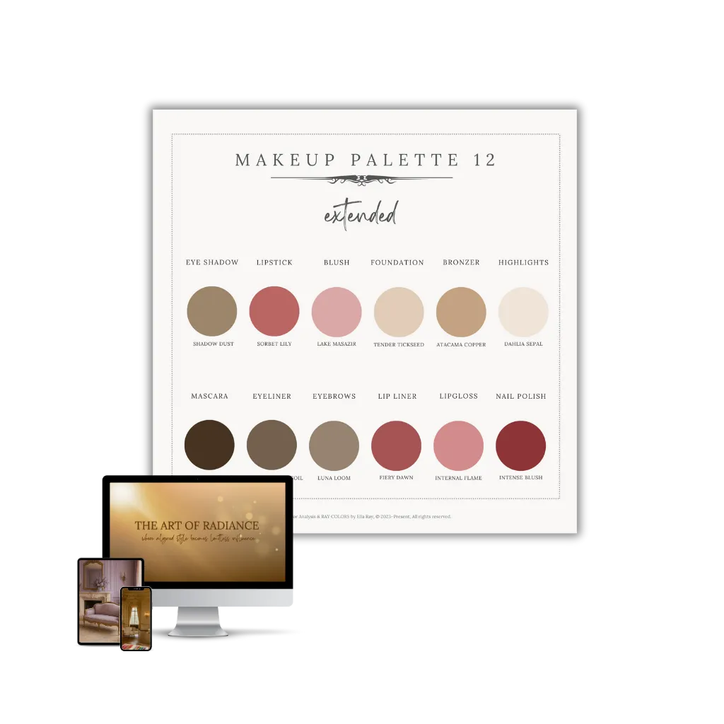 Your Makeup Palette 12 Premium & Elite includes a full color analysis PDF on your chroma, depth, contrast,
